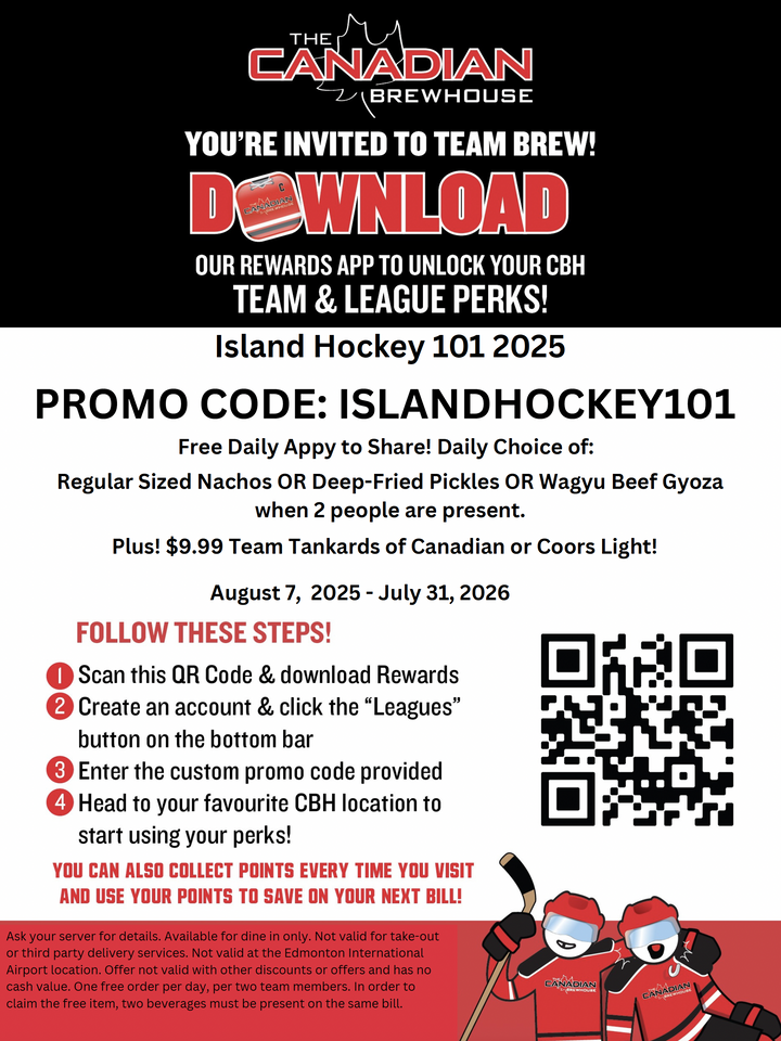 We have partnered with Canadian Brewhouse, 3500 Uptown Blvd #117, for amazing offers which can be redeemed right away by you and any of your team members!